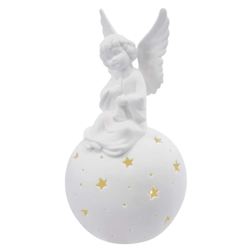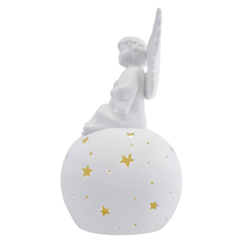 svieti hviezdami v teplej bielej farbe a sediaci anjel dodá vášmu