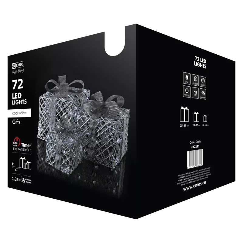 - Darčeky svietiace LED, 3 veľkosti, vnútorné, studená biela, časovač (DCFC10)