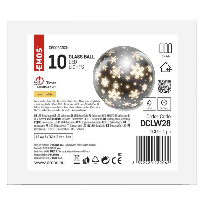 - Guľa sklenená LED 3xAA 12 cm
