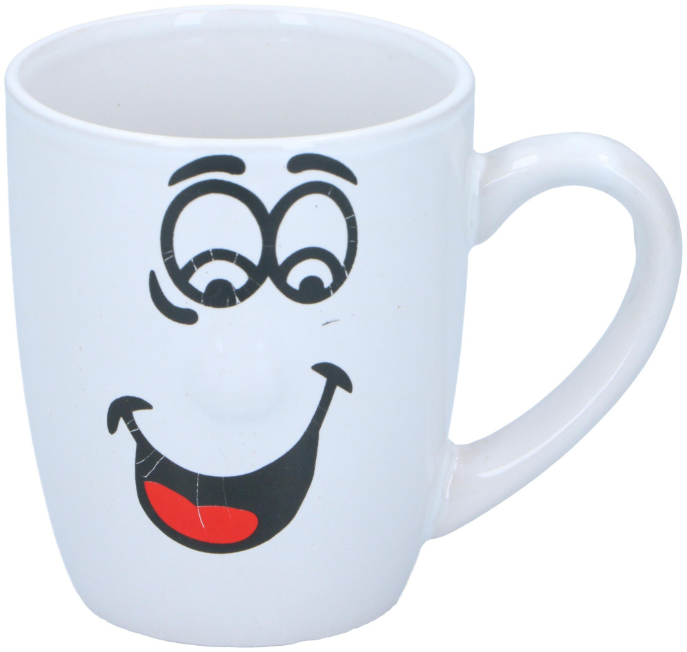 Zábavný hrnček s usmievavou tvárou pre každodenné potešenie, ideálny na horúce nápoje.