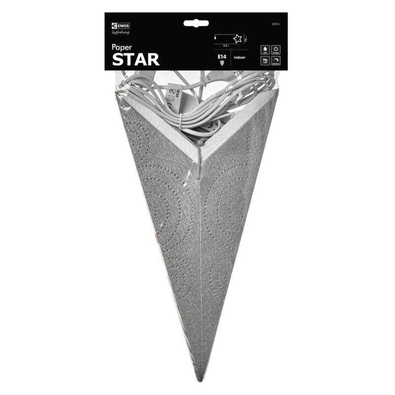- Hviezda vianočná LED papierová strieborná, 75 cm, 2×AA, teplá biela (ZY2248)