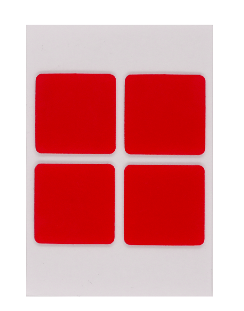 • Priehľadné obojstranne lepiace štvorcové nálepky s UV odolnosťou