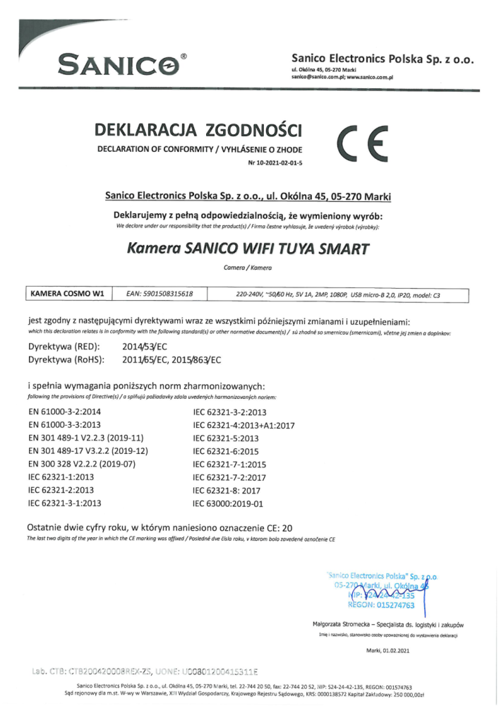 - Kamera interiérová Smart WiFi Tuya COSMO W1 MINI + napájací zdroj