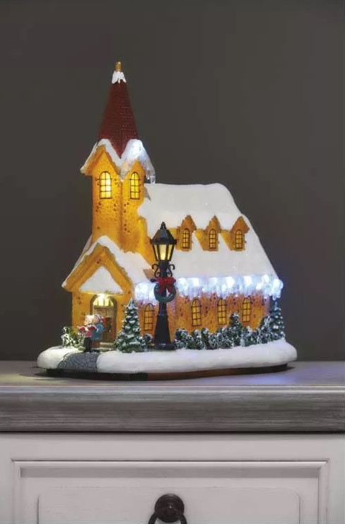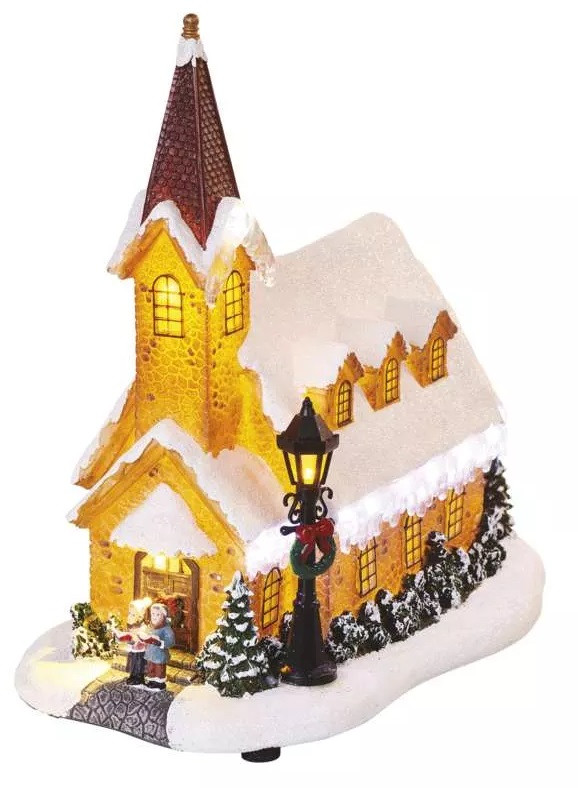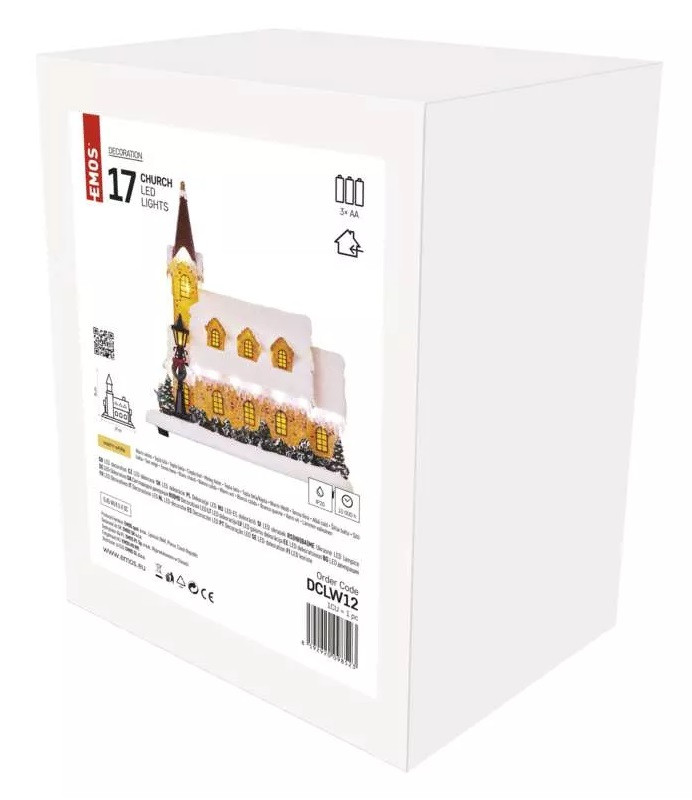 - Kostol zasnežený vianočný17 LED 26 cm, 3x AA, vnútorný, teplá biela (DCLW12)