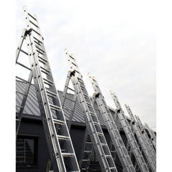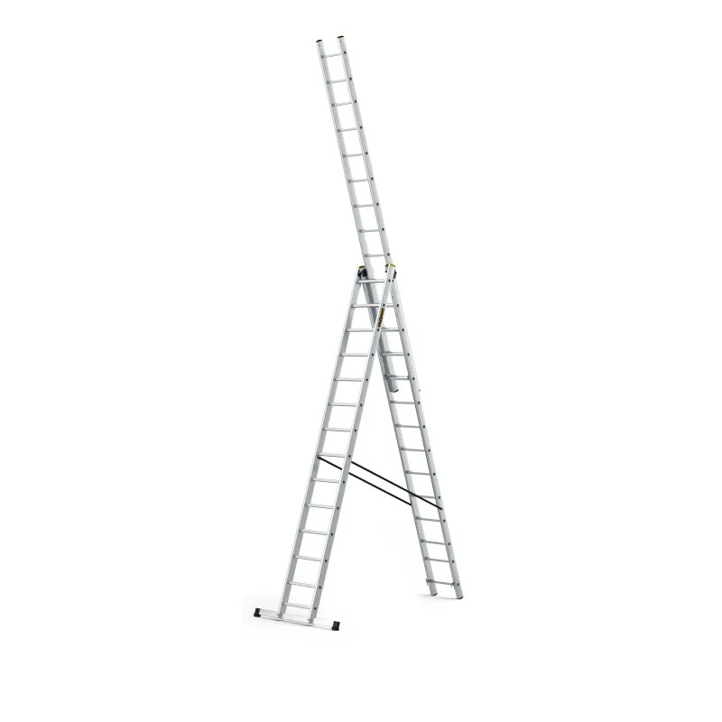 - Možnosť rozloženia rebríka v naklonenej, samostatne stojacej polohe a s vysunutým tretím prvkom