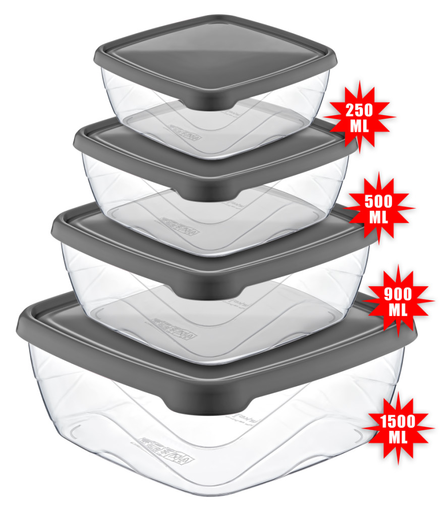 - Nádoba na potraviny štvorcová sada 4ks (250ml-500ml-900ml-1500ml)