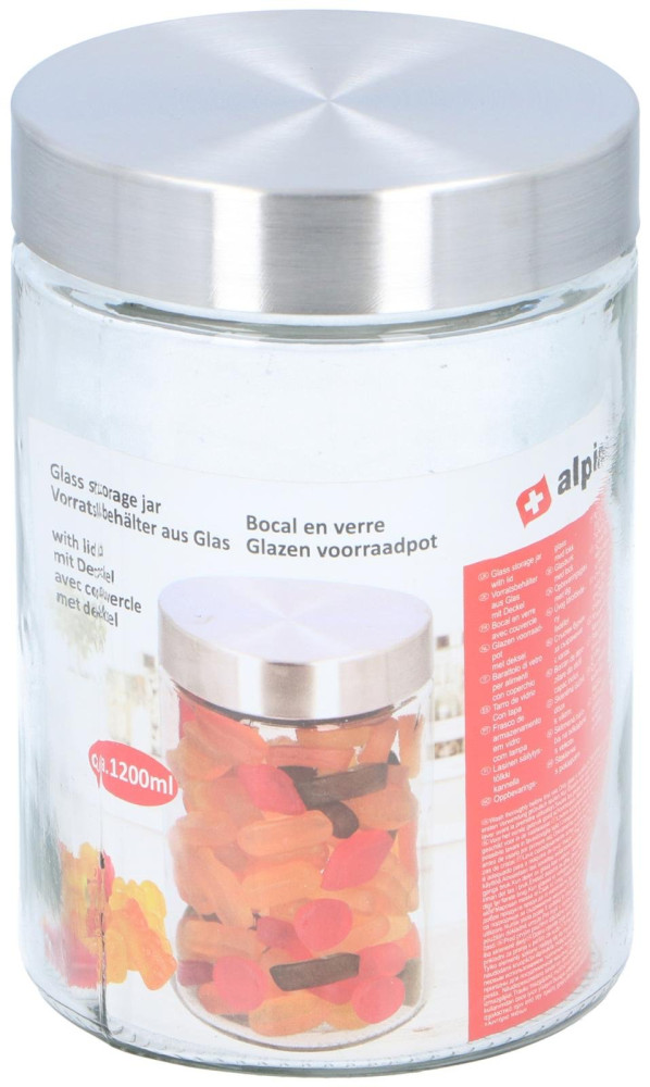 Praktická sklenená nádoba s objemom 1200 ml a priemerom 11 cm. Ideálna na udržiavanie suchých potravín čerstvých a usporiadaných vo vašej kuchyni.