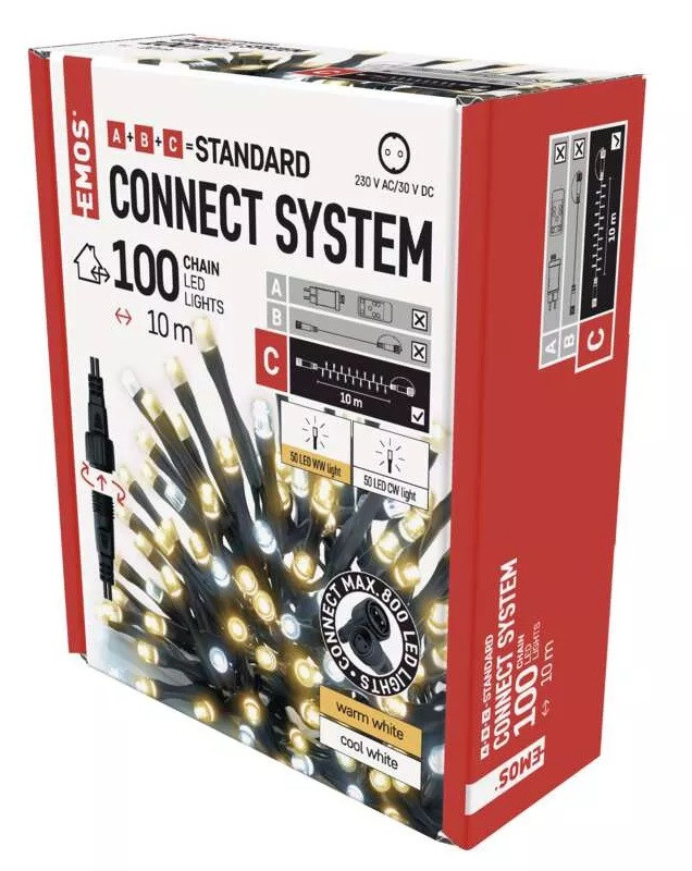 - Reťaz spojovacia 100 LED Standard, 10 m, vonkajšia, teplá/studená biela (D1AN01)