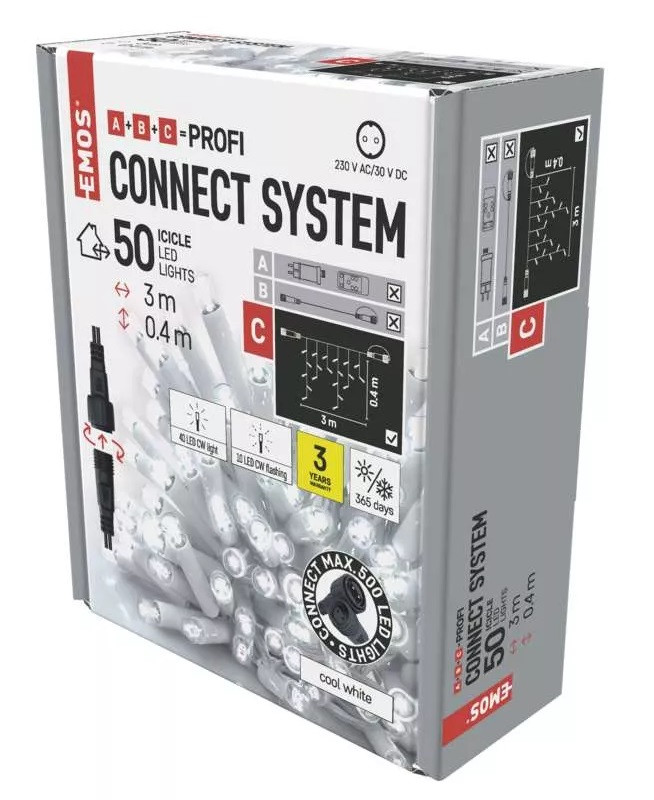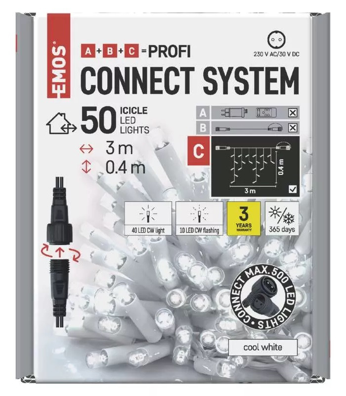 - Reťaz spojovacia blikajúca biela 50 LED Profi – Cencúle, 3 m, vonkajšia, studená biela (D2CC04)