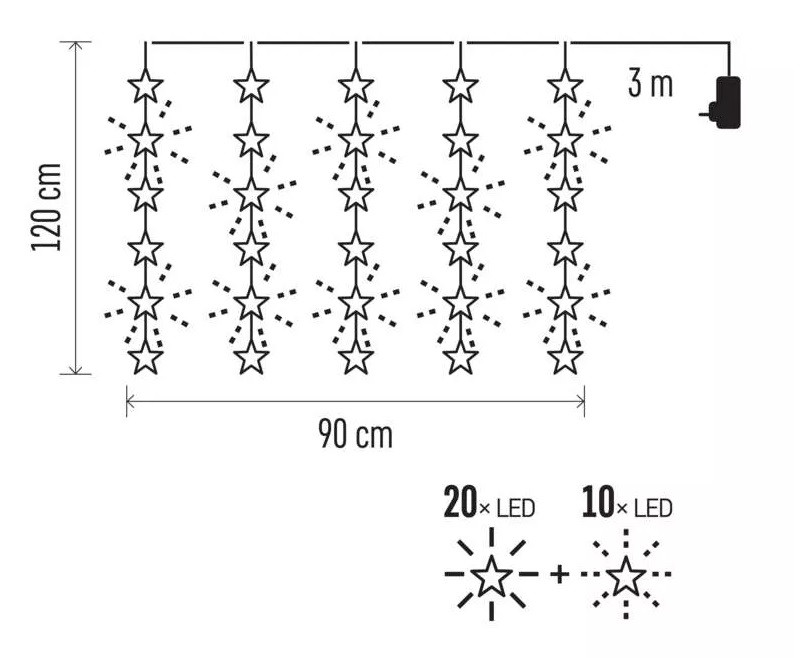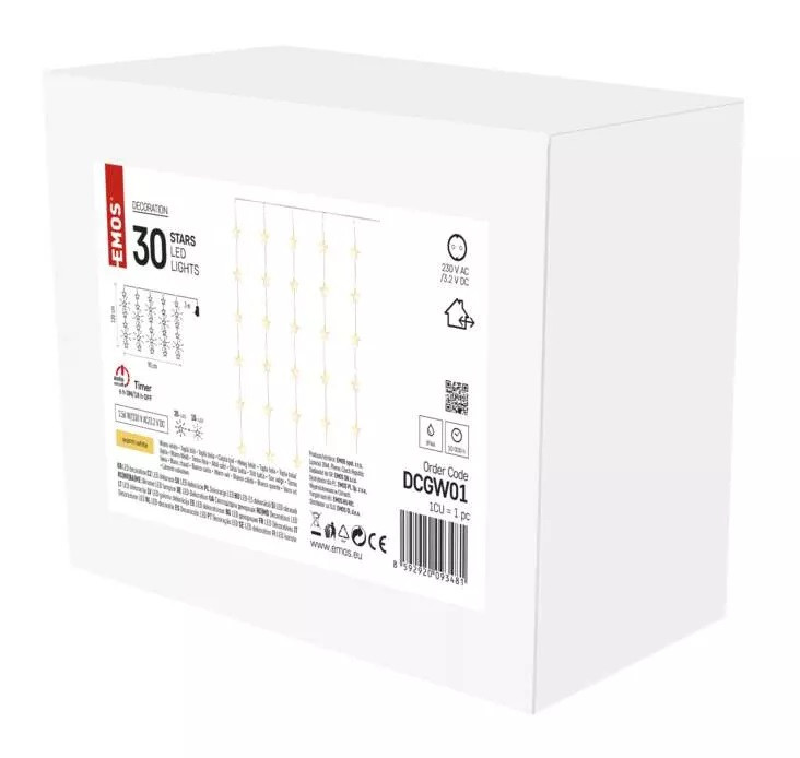 - Reťaz vianočná 30 LED – Hviezdy, 120x90 cm, vnútorný, teplá biela, časovač (DCGW01)