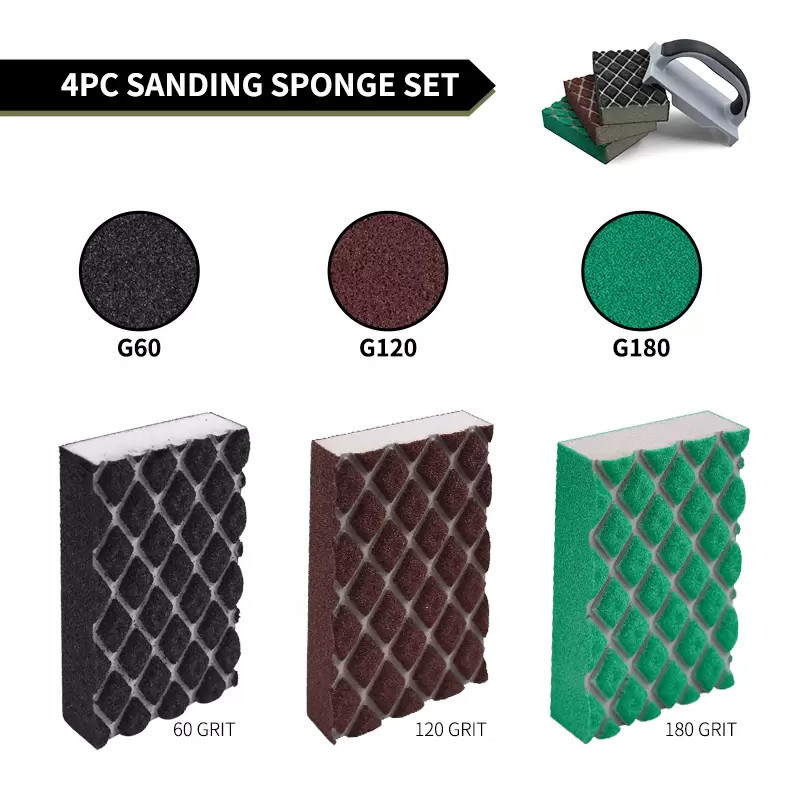 • 3 brúsne špongie zrnitostí 60, 120 a 180 s ergonomickou rukoväťou