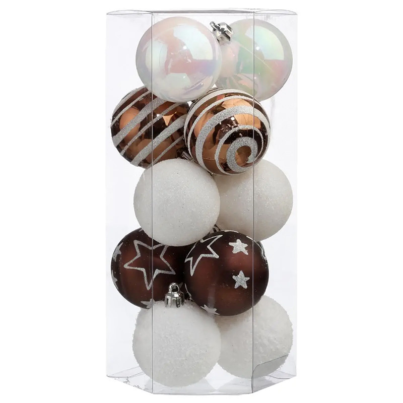 - Sada vianočných gúľ 50 mm biela/bronz 15ks