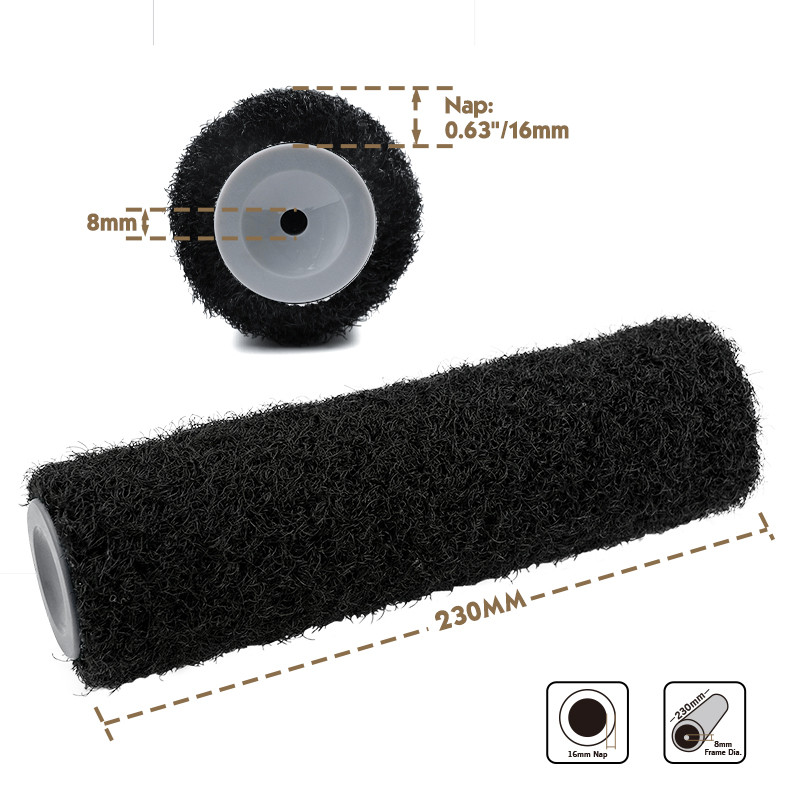 • Odolné dlhé syntetické vlákna naberajú zmes a rovnomerne ju nanášajú na stenu