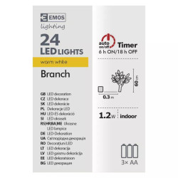 - Vetvička s perlami LED, 60 cm, 3× AA, teplá biela, časovač Všeobecné (DCTW08)